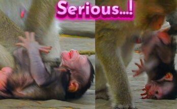 “Help me, Mom!” The desperate moment unfolds as Prim nearly loses her beautiful daughter during a savage attack from another group of monkeys. The sudden clash creates chaos and fear, …