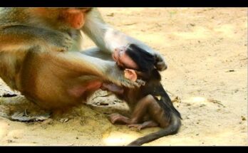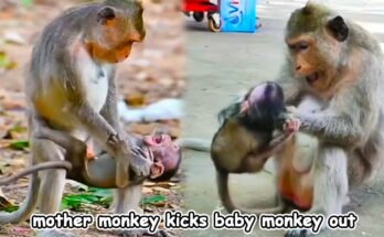A sad and troubling moment unfolds as a mother monkey refuses to hold her baby at all. Instead of offering warmth and protection, she pushes the tiny one away and …