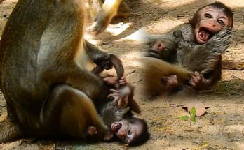 A fierce and emotional moment unfolds between the little monkeys Fly and Feley as they struggle to get milk from their mother, LyLy. Both babies are eager and determined, pushing …