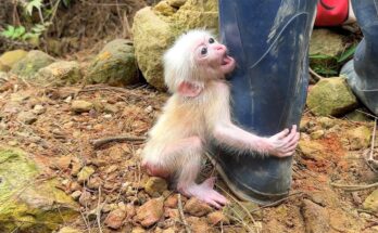 A Heart-Touching Journey: Discovering the Poor Baby Monkey’s Struggle 😢🐒