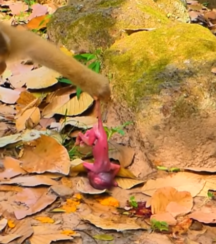 Neither monkey reacts dramatically. There are no loud cries, no visible panic. Instead, their response is subtle: lowered heads, slower movements, careful glances. It is grief expressed not through display, but through stillness. Animals, like humans, do not always need overt expressions to acknowledge loss. Presence alone becomes a form of recognition.
