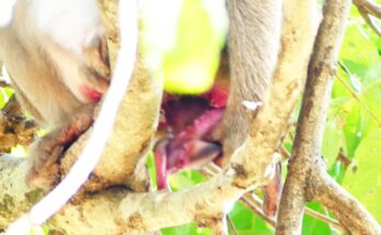 A terrifying moment unfolded when a baby monkey accidentally fell into the water and began to drown. Too small and weak to swim, the baby struggled desperately, its tiny arms …