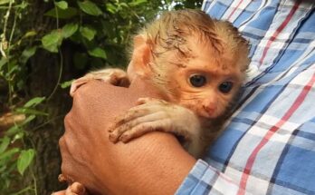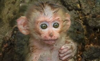A calm and gentle moment unfolds as a little monkey experiences relief after an ant is carefully removed from the tree where it was resting. What began as a small …
