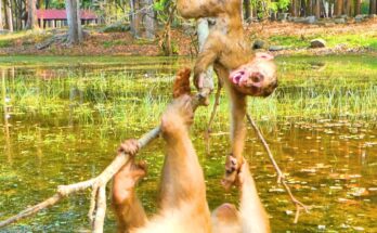 High in the treetops, the jungle usually echoed with playful sounds, but today the air felt tense. Mom Libby, a strong and experienced monkey, climbed toward Leo with stern determination. …