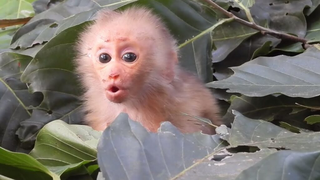 The newborn baby monkey looks incredibly delicate and adorable. With soft fur, tiny fingers, and eyes just beginning to open wider, the baby clings tightly to its mother’s chest. Every movement seems cautious, as if both mother and baby are learning together. The mother holds her baby securely, pausing often to ensure he feels safe and calm.