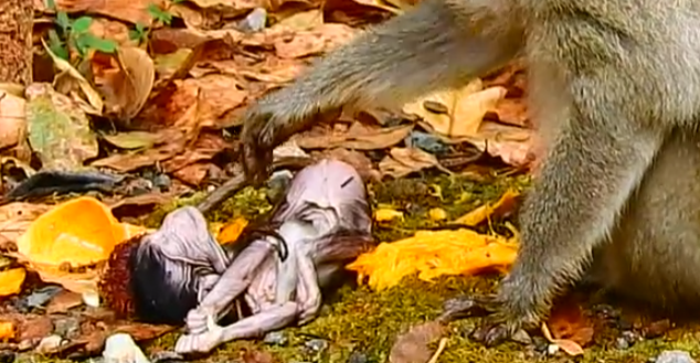 Its mother was devastated when she returned from foraging to find her child dead, and no reason could explain the tragedy. She had spent the morning climbing through the trees, searching for fruits, leaves, and nourishment, every movement guided by the instinct to care for her little one. The thought of her baby, waiting for her warmth and safety, had filled her with purpose. But when she returned, the sight that met her eyes was unbearable—a small, still body lying helplessly, the life that should have been vibrant and full extinguished without warning.