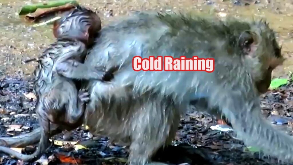 Little monkey Lony clung tightly to his mother as rain poured down from the dark sky. Each drop felt cold and heavy, soaking their fur and making the forest slippery and dangerous. Despite the harsh weather, his mother had no choice but to go out and fetch food. Hunger does not wait, even when conditions are difficult. Lony, still very young and weak, refused to let go of her, hugging her closely as they moved together through the rain.