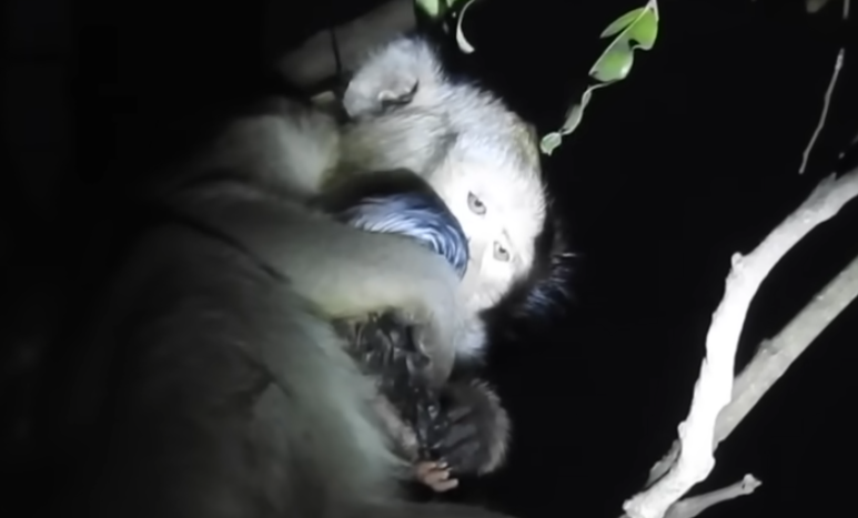 Oh my god, a shocking and unforgettable moment was captured when a big monkey gave birth to a baby alone in a tree late at night. Under the darkness of the forest, with only moonlight and faint sounds of nature around her, the mother faced childbirth without any help or protection. High above the ground, the risk was enormous, yet her instincts guided every movement.