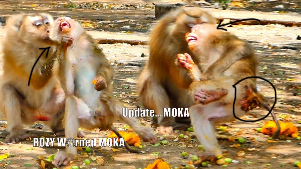 Lucie stumbled, frightened and trembling. The bite wasn’t just physically painful; it was terrifying. One moment she was safe, the next she was attacked without reason she could understand. The other monkey was likely competing for food, stressed, or asserting dominance, but to Lucie it felt like pure betrayal and danger. Her heart raced, her body shaking, tears in her eyes as she tried to escape.