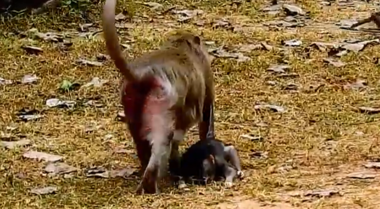 Very sad scenes unfold when a newborn monkey dies, yet its mother cannot accept the loss. She stays close to the tiny body, touching it gently, as if waiting for it to move or breathe again. In her eyes, there is confusion and deep sorrow. She does not understand why her baby is silent, why it no longer clings to her or responds to her touch.