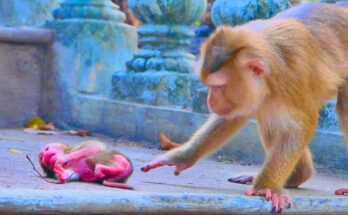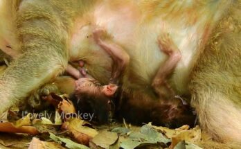 OMG—a helpless newborn macaque falls helplessly while its mother shows no care or milk, creating a scene that is deeply disturbing and heartbreaking. The tiny newborn, barely able to move, …