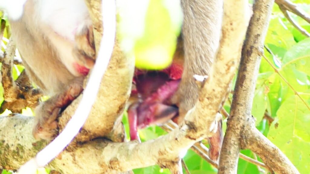 Lyna searched frantically among the branches, her movements quick and panicked. She called out again and again, her voice filled with fear and confusion. When she finally realized that her baby was no longer responding, her behavior changed. The panic turned into disbelief. She climbed up and down the tree repeatedly, checking every branch, every fork, as if hoping she had simply missed something.