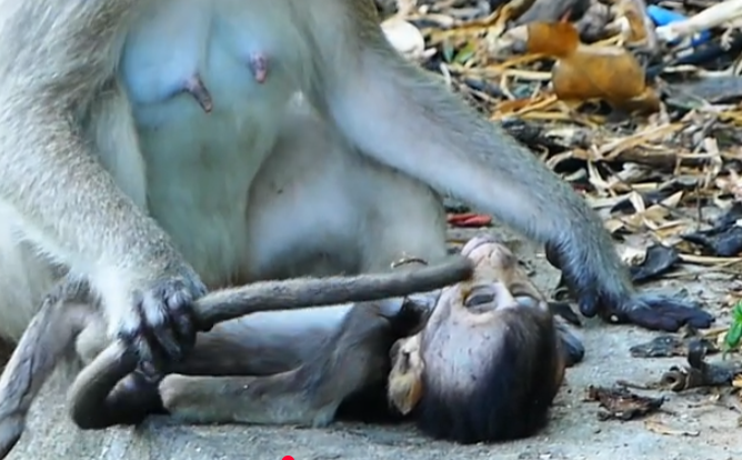 So heartbreaking to feel sorry for her, as she deeply loves and cherishes her baby monkey with every part of her being. Her devotion is visible in the way she watches over her child, never straying far, always alert to the smallest movement or sound. Every gentle touch, every protective glance shows how strong that bond truly is.
