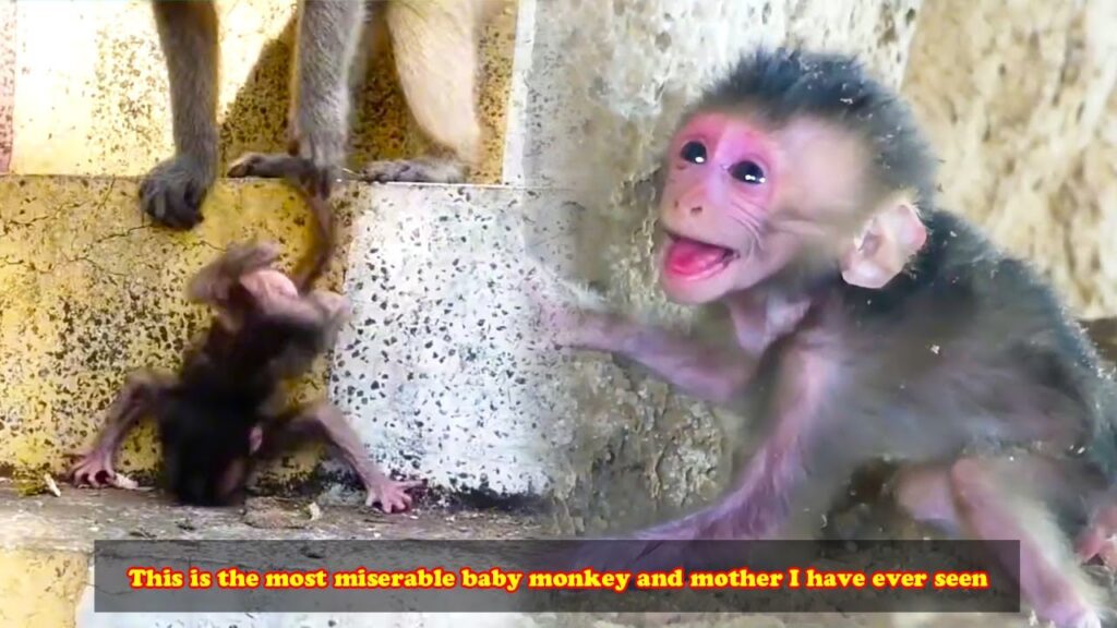 From the very first moment these two appear on camera, it becomes clear that this baby monkey and its mother are carrying a weight of sadness rarely seen among their troop. Their expressions, their movements, and even the way they sit together tell a story of hardship that runs deep. Instead of the lively energy normally seen in primate families, this pair moves through their environment with a quiet heaviness, as though every step is a challenge.
