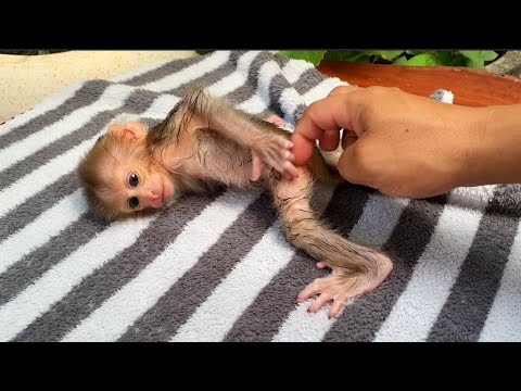 As the video begins, the tiny monkey uses its hands, feet, and even its back to scratch in the funniest ways. Whether rubbing against objects or twisting its body in all directions, every movement shows just how much it wants some comfort. What makes this moment even more delightful is the way the monkey looks up at its caretaker—as if clearly asking, “Please give me a shower!”