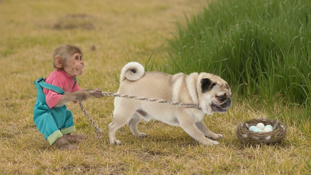 “How Monkey Bon Protects the Bird Eggs from the Dogs’ Misch,” viewers witness an extraordinary act of compassion from Bon, the brave and sharp-minded monkey loved by fans worldwide. This video beautifully captures Bon’s instinctive kindness and quick thinking as he steps in just in time to guard a nest of vulnerable bird eggs from a pair of playful—but overly curious—farm dogs.