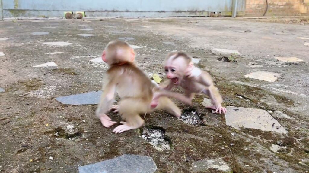 Selena starts yelling in her tiny, high-pitched monkey voice, clearly calling for Ronaldo’s attention. Her cries are not of fear—but of playful frustration. She hops around excitedly, waving her arms as if telling him, “No! Don’t go!” Her expressive eyes widen, and she follows him step by step, refusing to let him escape.